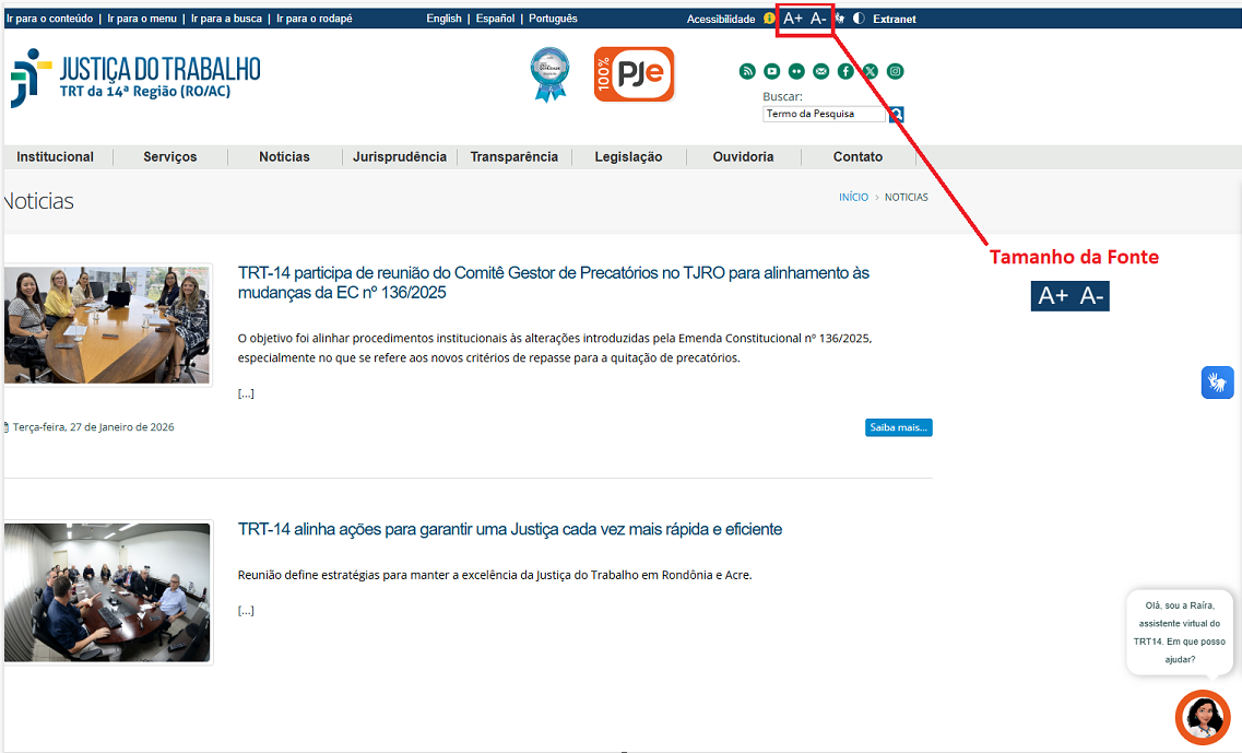 Pagina inicial | https://portal.trt14.jus.br/portal/ | 9.4 | 18/03/2026 | |