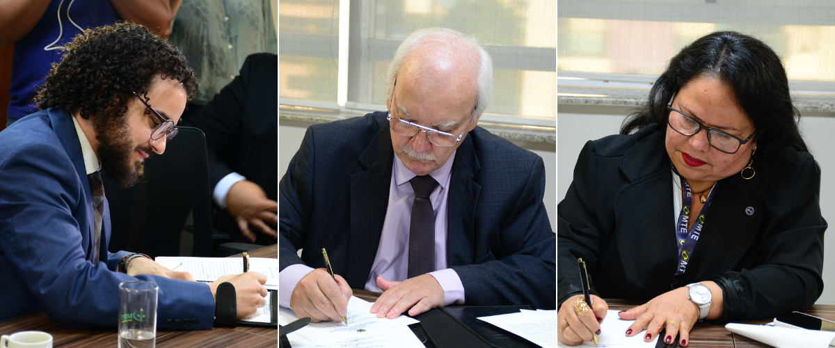 A assinatura do termo ocorreu na tarde de quinta-feira (16), no Gabinete da Procuradoria-Geral do MPT, pouco antes da Solenidade de Ratificação de Posse e Recondução do Procurador-Chefe do Ministério Público do Trabalho em Rondônia e Acre, Carlos Alberto Lopes de Oliveira, para o biênio 2023-2025.