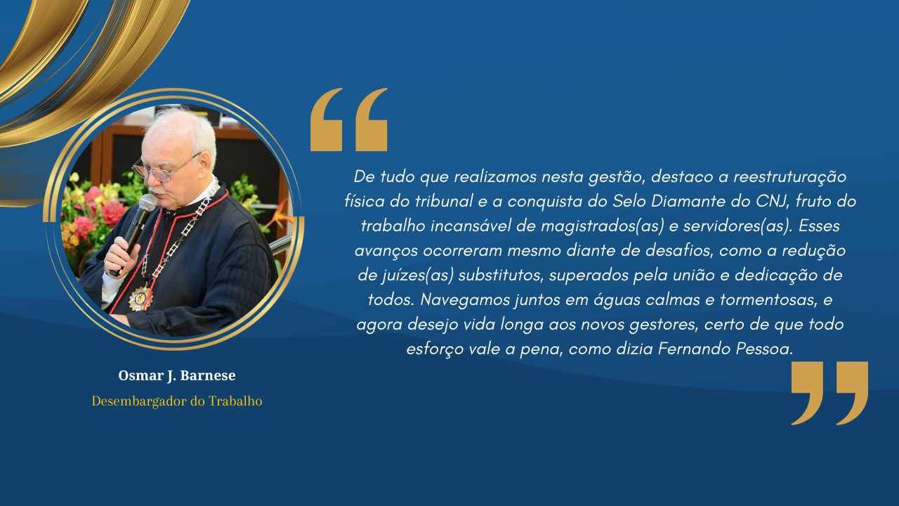 O desembargador Ilson Alves Pequeno Junior assume, a partir de 1º de janeiro de 2025, a Presidência do Tribunal, cargo que já ocupou no biênio 2013/2014. Já o desembargador Carlos Augusto Gomes Lôbo assume as funções de vice-presidente e corregedor regional, atividades essas também já exercidas no biênio 2007-2008. Ambos foram eleitos em outubro deste ano em sessão do Tribunal Pleno, reforçando o compromisso com a continuidade e a inovação na gestão.