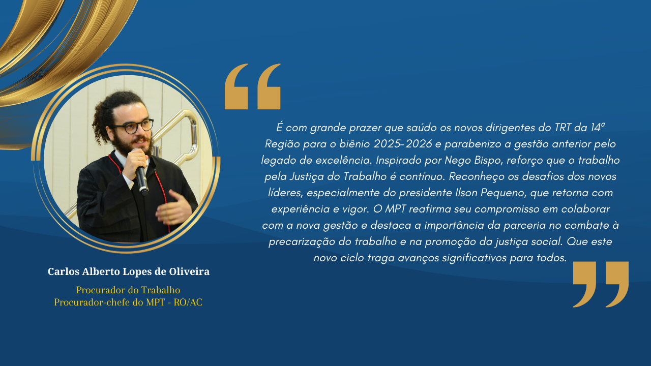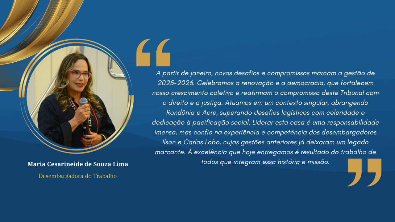Em uma solenidade prestigiada por autoridades, representantes de instituições parceiras, servidores e servidoras, o Tribunal Regional do Trabalho da 14ª Região (RO/AC) deu posse aos novos dirigentes para o biênio 2025/2026. O evento presencial ocorreu na tarde desta quarta-feira (4), no auditório do TRT-14, em Porto Velho, com transmissão ao vivo pelo canal oficial do Tribunal no YouTube.