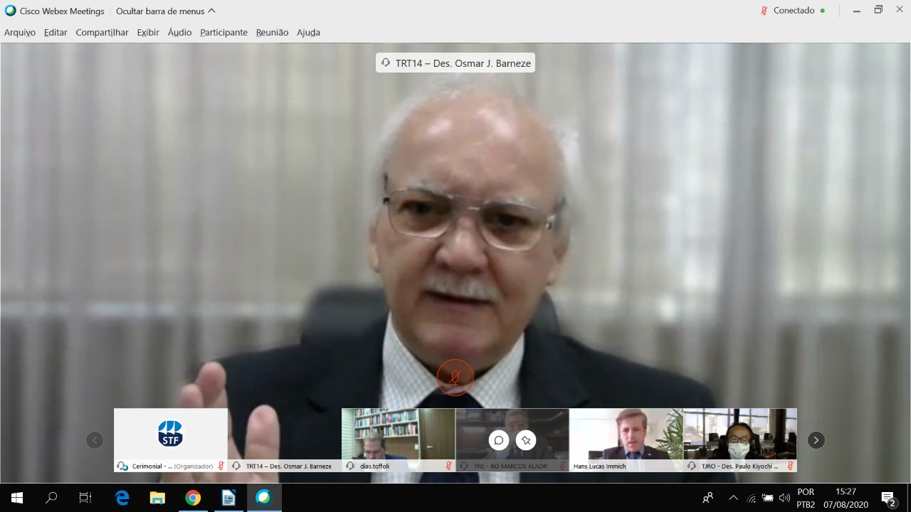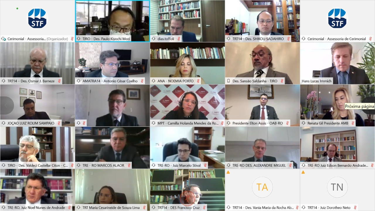 Ministro Dias Toffoli, Presidente do STF e CNJ, faz visita virtual aos Tribunais de RO