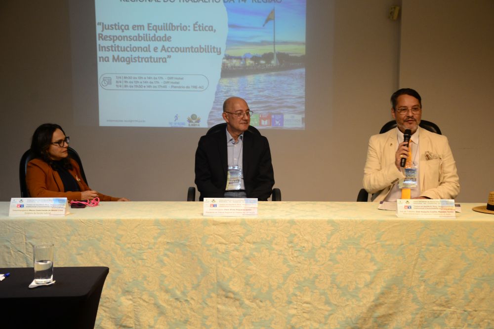 O presidente do TRT-14, desembargador Ilson Alves Pequeno Junior, ressaltou a importância do encontro como espaço de reflexão diante dos desafios da magistratura. “Estamos diante de um cenário em que ética, responsabilidade institucional e accountability são indispensáveis. Este encontro nos convida a refletir sobre como equilibrar independência judicial e compromisso com a sociedade, fortalecendo um Judiciário mais próximo e humanizado”, destacou.