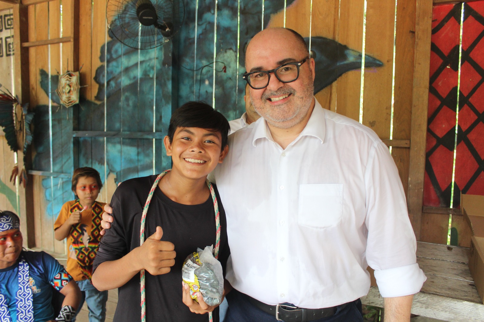 Naynawa Shanenawa, líder espiritual da aldeia, ressalta na obra a importância de respeitar e cuidar das crianças, que representam o futuro, e da herança cultural dos povos indígenas.