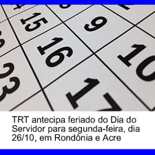 O Tribunal Regional do Trabalho da 14ª Região (RO/AC) disponibiliza a escala do Plantão Judiciário para o mês de outubro de 2015. Determinado pela Emenda Constitucional n. 45 de 30 de dezembro de 2004, o Plantão, destina-se a atender casos de urgência, em que se objetive evitar o perecimento de direitos, o dano de difícil reparação ou assegurar a liberdade de locomoção. [...]
